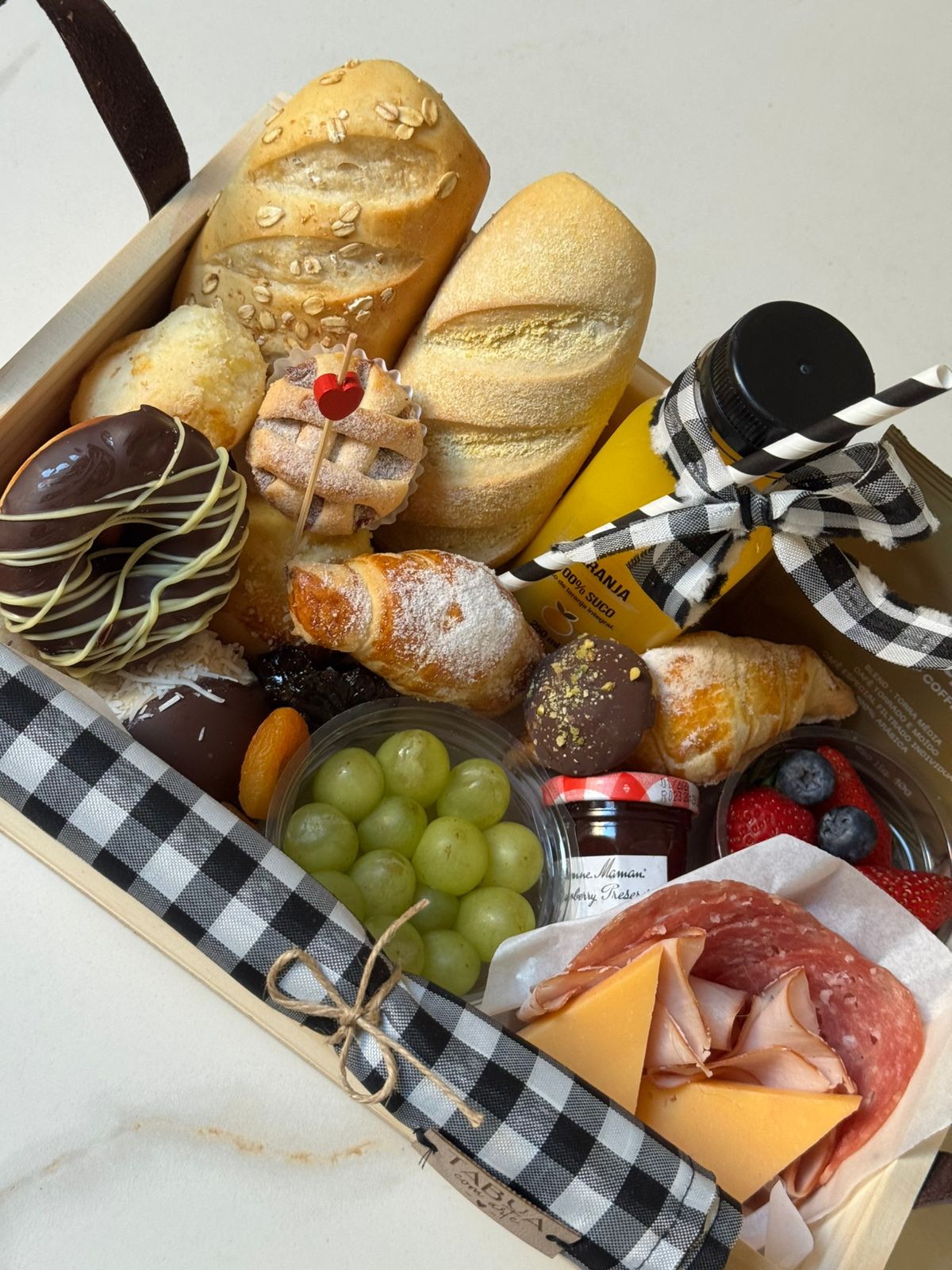 – Doces: croissants de goiabada, donuts, beijo de anjo de chocolate, tortinha de maçã
